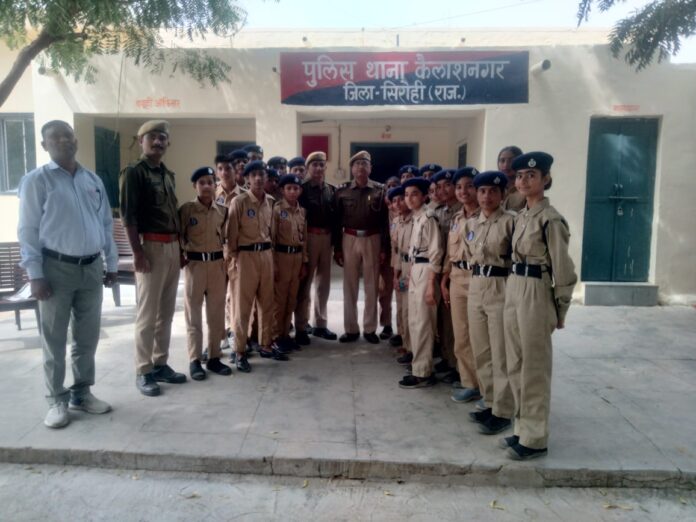 कैलाश नगर । राउमावि मनादर के स्टुडेंट पुलिस कैडेट्स द्वारा आज पुलिस थाना कैलाश नगर का अवलोकन किया गया श्रीमान थाना अधिकारी प्रेमसिंह ने कैडेट्स को पुलिस द्वारा आमजन में विश्वास चोरों मे डर हो, यातायात नियम वाहन चलाते समय हेलमेट का उपयोग महिलाओं का शोषण व होने वाले अत्याचार मनचलों द्वारा छेड़खानी आदि पर होने वाली कारवाई की गुड टस बेड टस की जानकारी करवाई ड्रिल प्रशिक्षक श्रीपाल सिंह ने कैदखाना शस्त्रागार, मालगृह,का अवलोकन करवाया हेड कांस्टेबल श्री किशनलाल ने प्रथम सूचना रिपोर्ट की विस्तृत जानकारी दी गई। श्रीमान प्रधानाचार्य निजाम खान खोखर राउमावि मनादर के आदेशानुसार प्रभारी जेपाराम डांगी निर्देशन में भ्रमण व अवलोकन करवाया गया