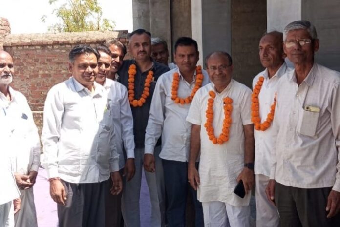 पुरानी कमेटी के अध्यक्ष व समाज के सदस्यों ने सभी नए पदाधिकारियो का फूलमाला पहनाकर बधाई व शुभकामनाएं दी।