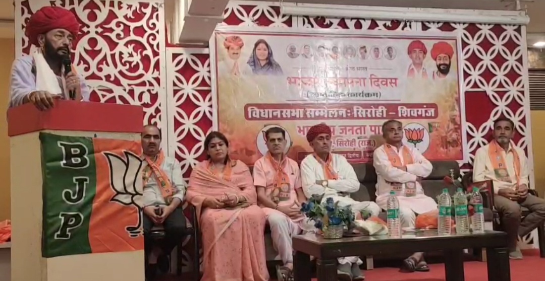 सिरोही – (रमेश टेलर)भाजपा के स्थापना दिवस कार्यक्रम अभियान के अंतर्गत निजी होटल में सिरोही शिवगंज विधानसभा सम्मेलन का आयोजन जिलाध्यक्ष रक्षा भंड़ारी की अध्यक्षता व राज्यमंत्री ओटाराम देवासी एवं सांसद लुम्बाराम चौधरी, जिला प्रमुख अर्जुनराम पुरोहित, पूर्व जिलाध्यक्ष कमलेश दवे, किसान मोर्चा प्रदेश उपाध्यक्ष गणपत सिंह राठौड़ व कार्यक्रम के जिला संयोजक नरपतसिंह राणावत के सानिध्य में सम्मेलन आयोजित हुआ। राज्यमंत्री ओटाराम देवासी ने कार्यकर्ताओं को संबोधित करते हुए कहा कि भारतीय जनता पार्टी देश की सबसे बड़ी राजनीतिक पार्टी है, जो देशहित को सर्वोपरि मानती है। राजस्थान की भजनलाल सरकार सिरोही जिले के लिए ऐतिहासिक बजट दिया है भाजपा कार्यकर्ता उसका अधिक से अधिक प्रचार प्रसार करे और जनता को भाजपा सरकार की योजनाओं के बारे में बताये।