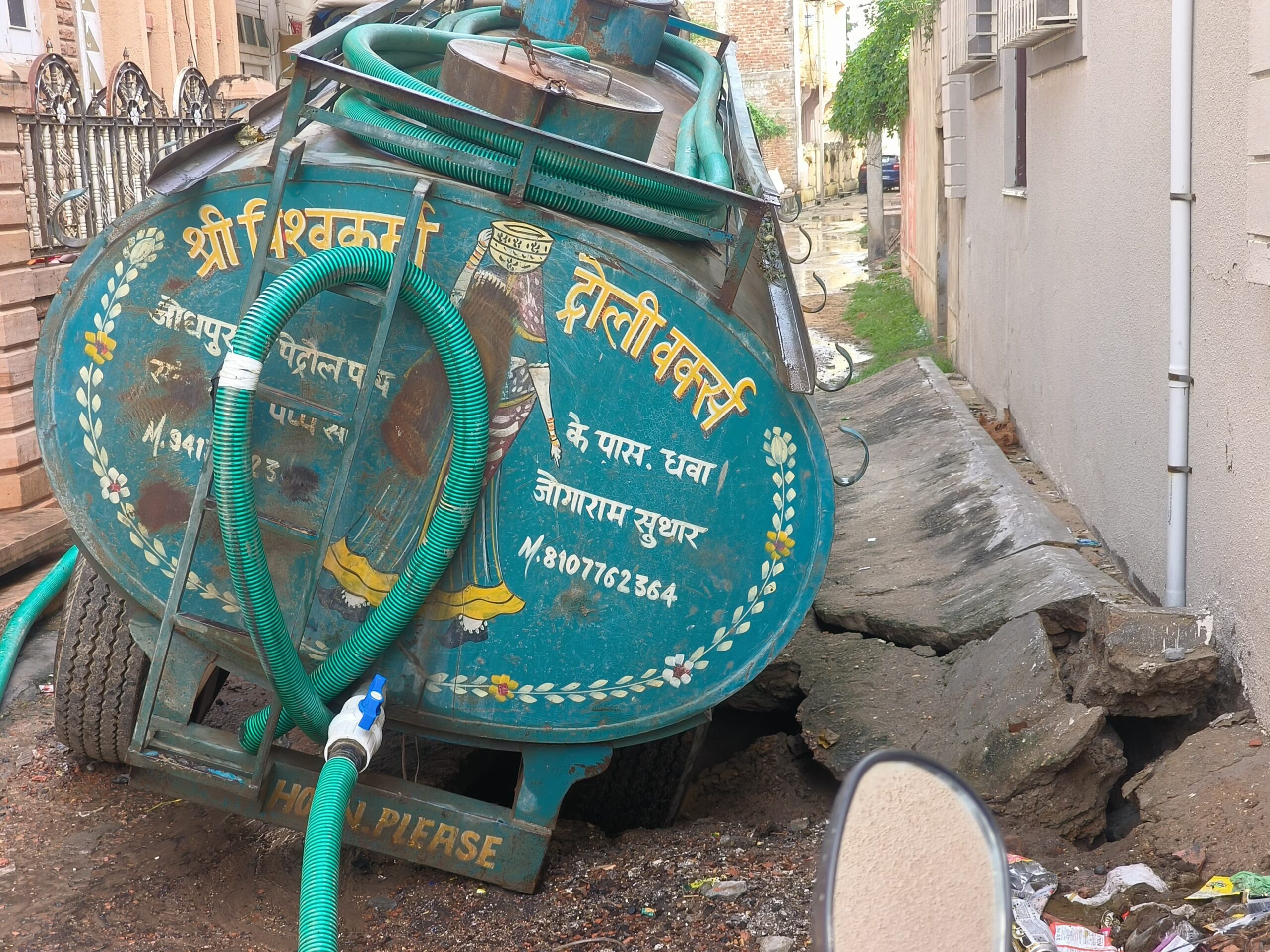 जालोर।(शंकर लाल चौधरी) मांडवला ग्राम पंचायत क्षेत्र में सीसी सड़क की जर्जर हालत बड़ी दुर्घटनाओं को न्योता दे रही है। मंगलवार को पानी का टैंकर सड़क दबने से बने गहरे गड्ढे में गिर गया। गनीमत रही कि किसी प्रकार की जनहानि नहीं हुई।