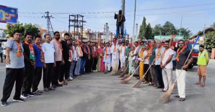 कार्यक्रम का आयोजन अंबेडकर सर्किल पर किया गया, जहां पार्टी कार्यकर्ताओं ने मिलकर श्रमदान किया।